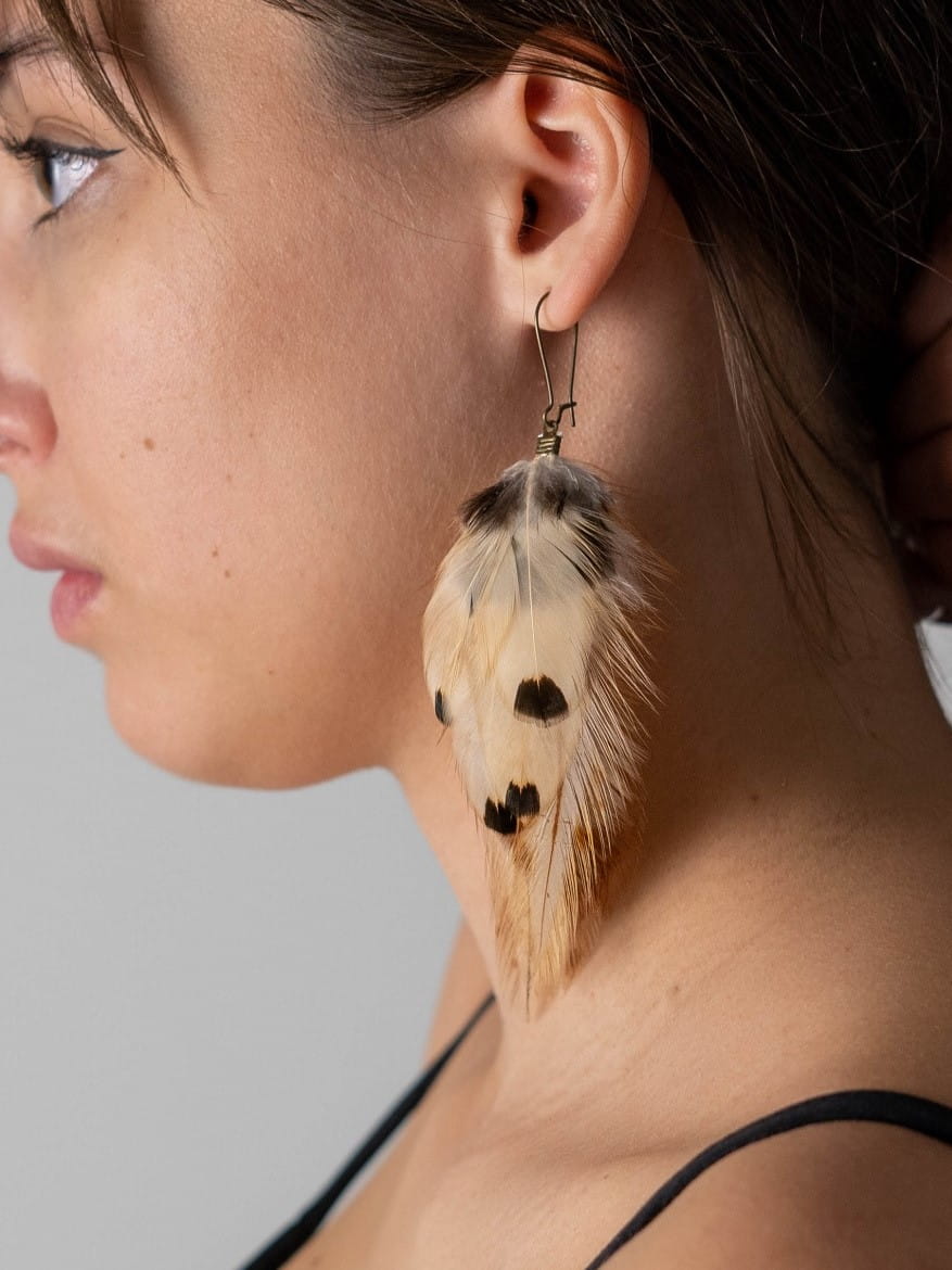 Kolczyki z piór to efektowna ozdoba, która nie może pozostać niezauważona i niedoceniona. Wyłącznie ręczna praca i wyłącznie naturalne dary natury wykorzystane do ich stworzenia sprawiają, że słowem kluczem, który może opisać twoje nowe kolczyki jest – unikatowość. Żadne dwa egzemplarze kolczyków Bażant nie są zupełnie identyczne i nikt nie będzie posiadał takiej pary, jak ta przygotowana właśnie dla Ciebie.