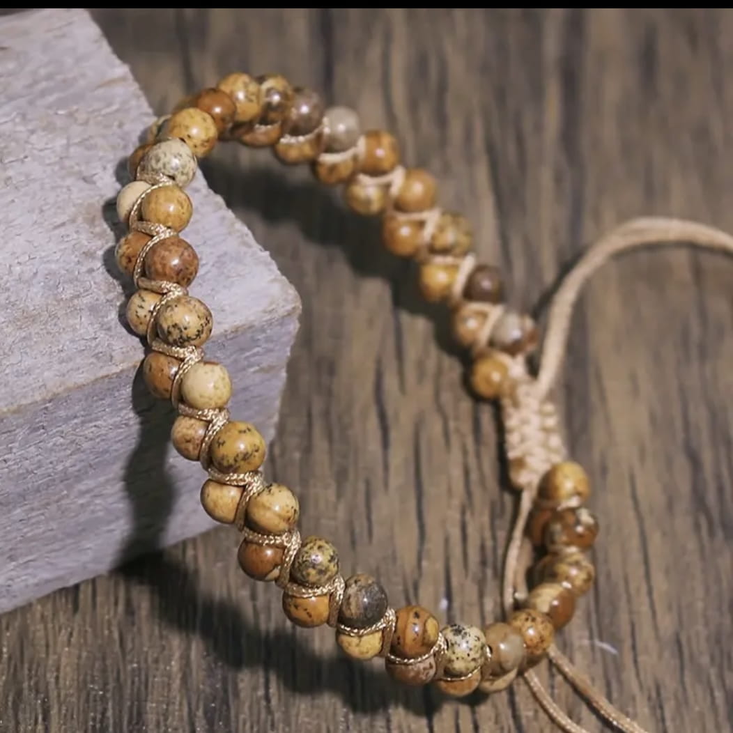 Bransoletka Berry to subtelne połączenie naturalnej harmonii i ręcznego rzemiosła. Wykonana z drobnych kamieni jaspisu w odcieniach kawy, beżu i ciepłego brązu, oplatanych złotą nicią – przywołuje na myśl zapach świeżo zmielonej kawy i spokój letniego popołudnia.