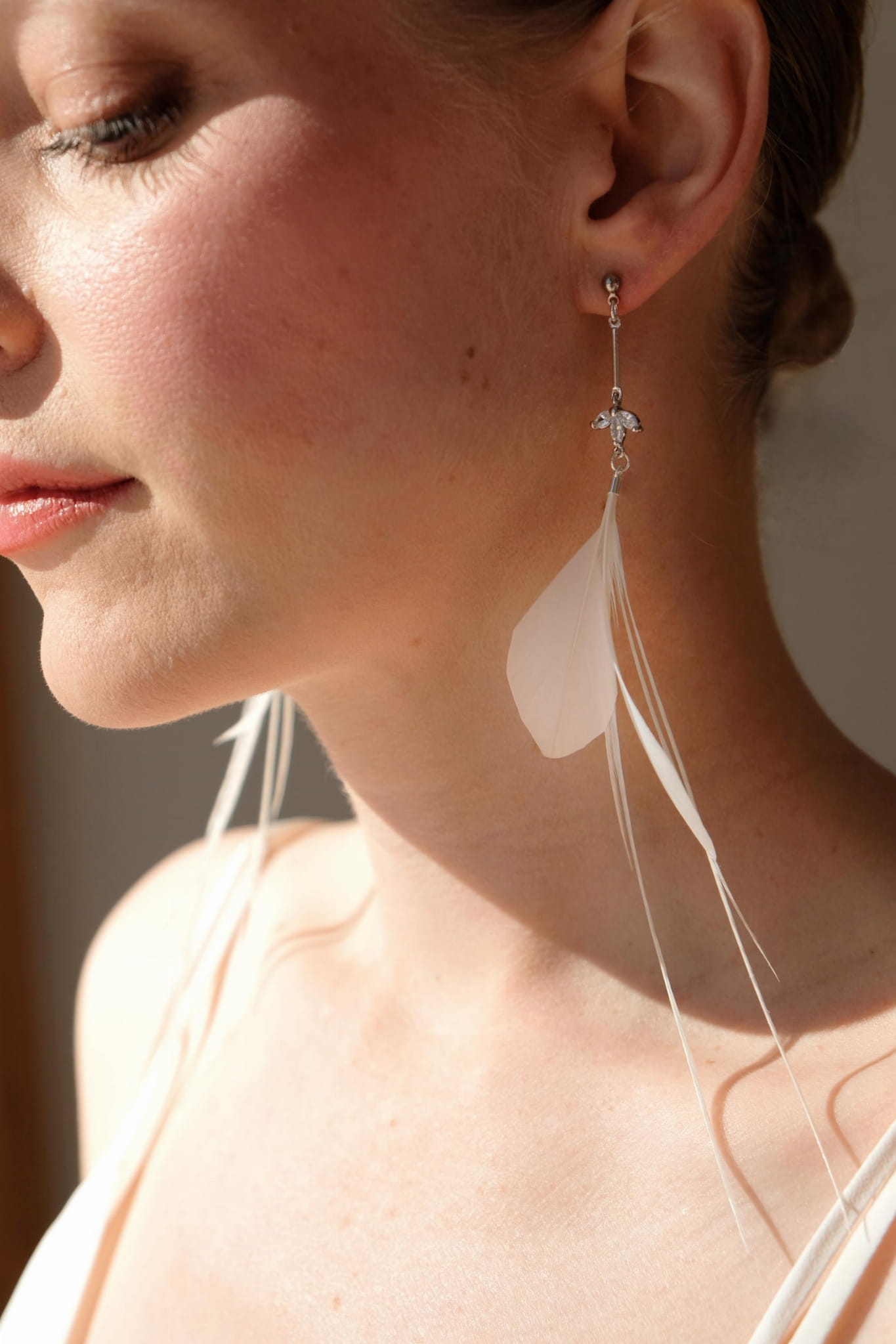 Kolczyki z piór Aurora – eteryczna lekkość i ślubna elegancja