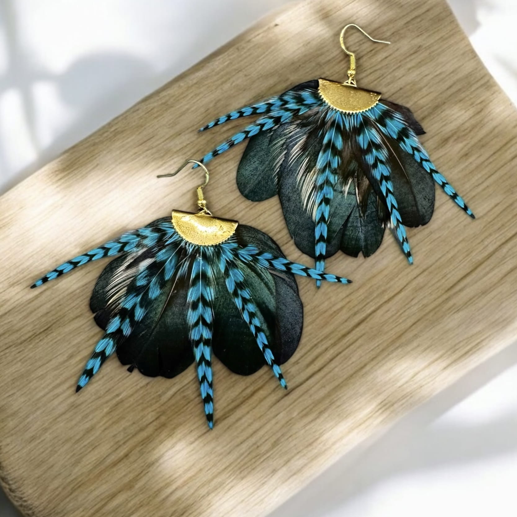 Kolczyki z piórami Blue Eclipse – magia natury na Twoich uszach!
