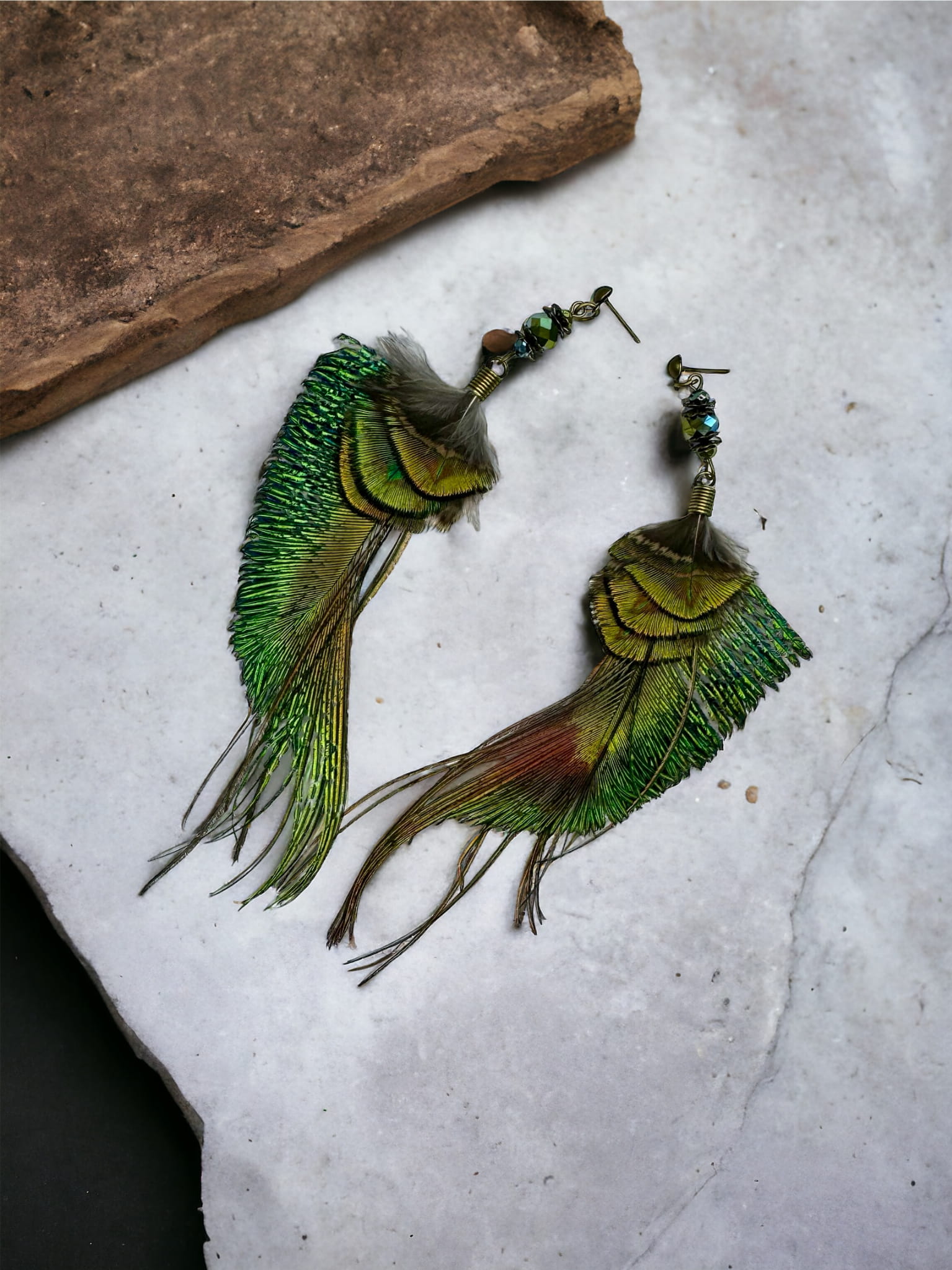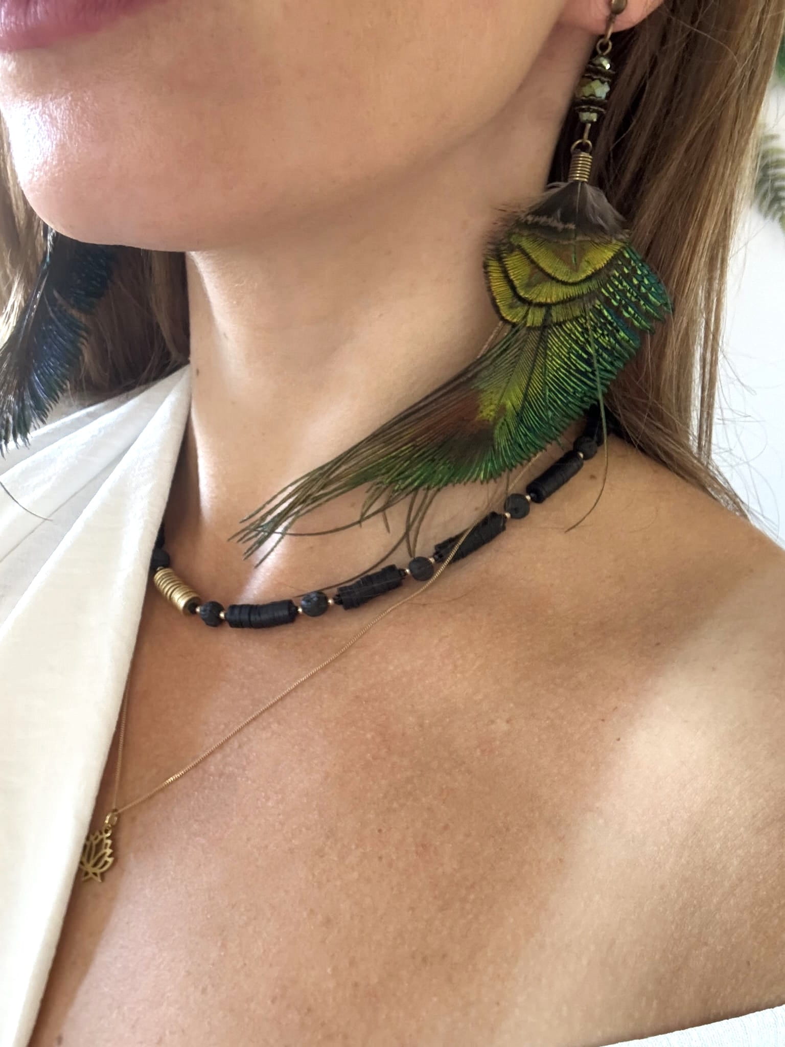 - kolczyki z piór Eva zostały przygotowane ze starannie wyselekcjonowanych piór, które w swojej uprzejmości udostępnił Ci paw królewski;
