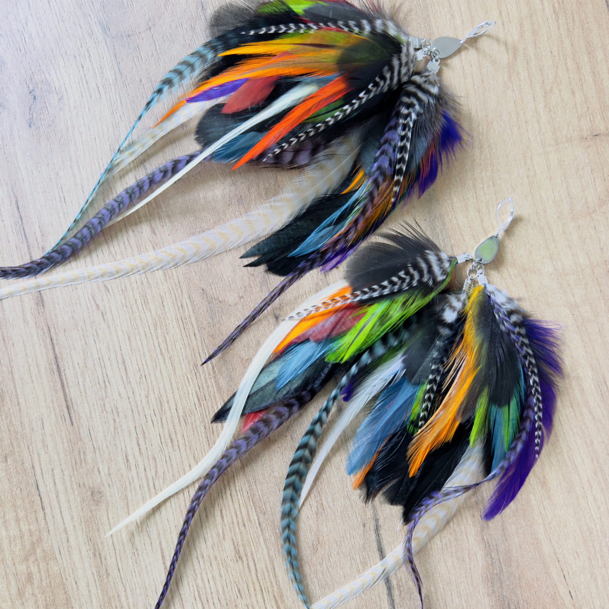 - Wymiary koczyków z piór Fija to w przybliżeniu: do 25 cm, poszczególne modele mogą się nieznacznie różnić w zależności od długości piór.
