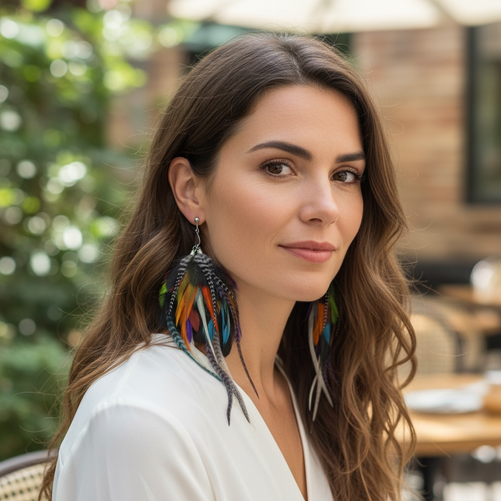 Kolczyki z piór Fija to najpiękniejsza z form wyjątkowej biżuterii wykonanej jedynie z naturalnych materiałów. Ptasie pióra potrafią przykuwać uwagę kolorem, ale to naturalna, niczym nieskażona. Kolczyki z piór Fija mogą stać się centrum Twojej stylizacji niezależnie od okazji – pasują na formalne spotkania, jak i przełamują codzienną rutynę i będą Twoimi towarzyszami w każdej wyprawie na miasto.