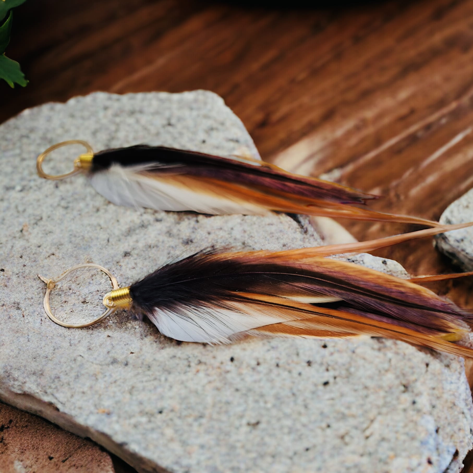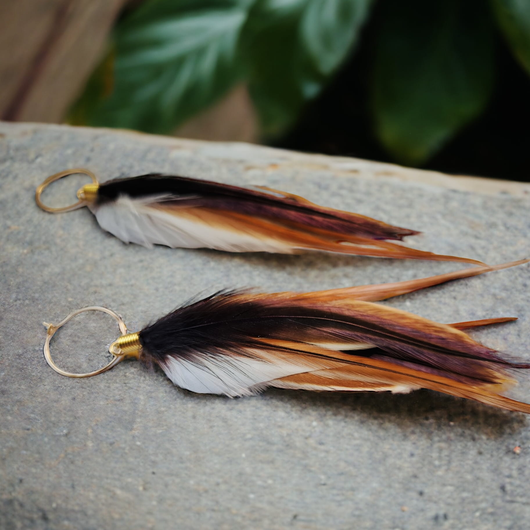 - Do przygotowania kolczyków z piór Jungle starannie wybraliśmy najpiękniejsze z piór, które zawdzięczamy uprzejmości koguta.