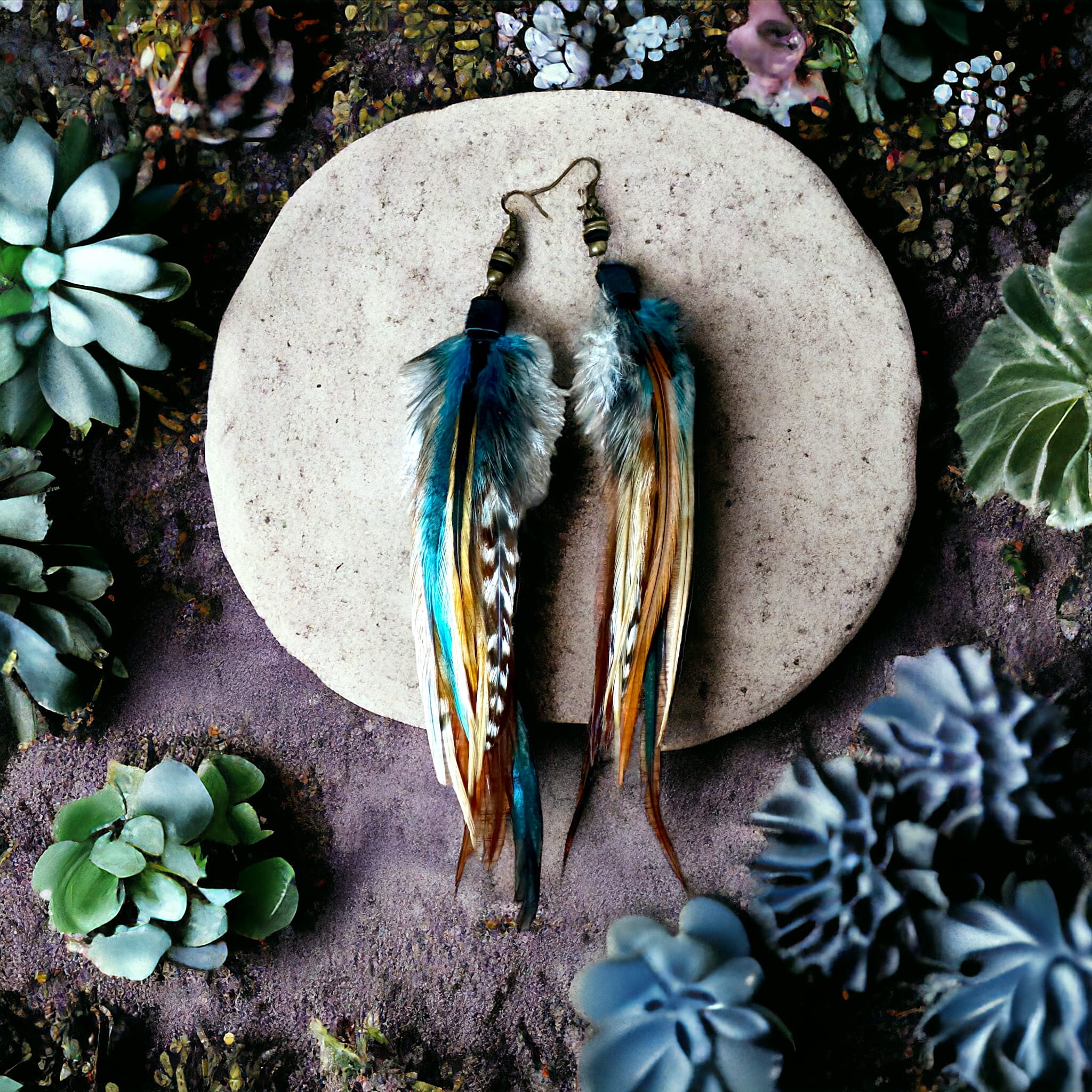 - Do przygotowania kolczyków z piór Moom starannie wybraliśmy najpiękniejsze z piór, które zawdzięczamy uprzejmości koguta.