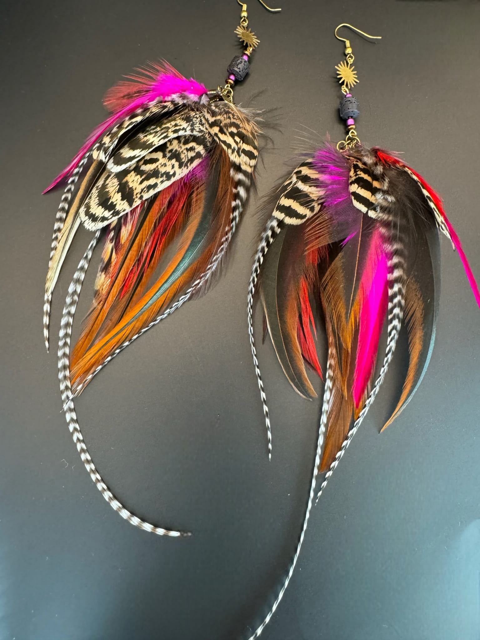 - kolczyki z piór Over Red zostały przygotowane z piór, które udostępnił Ci paw królewski oraz kogut;