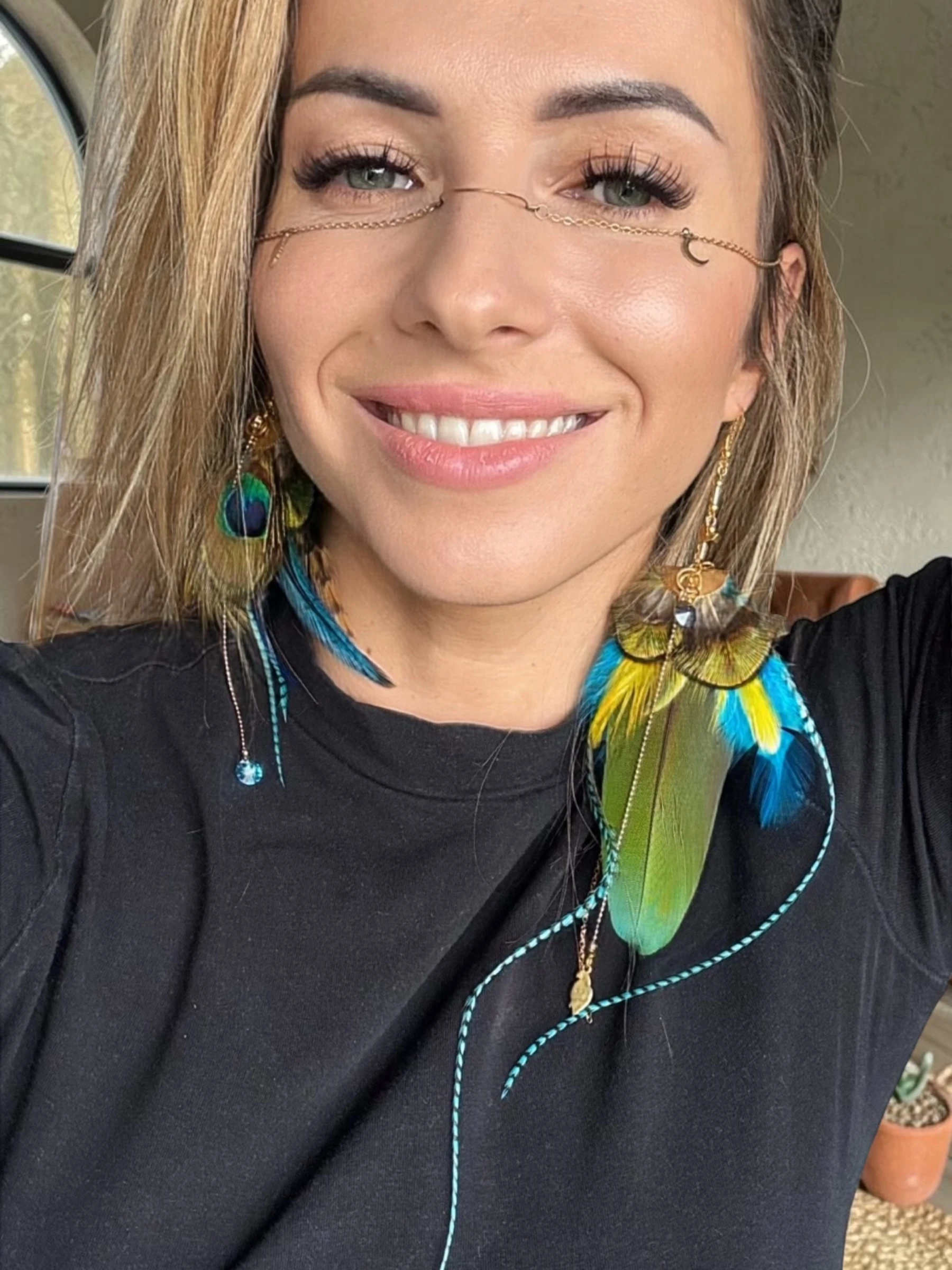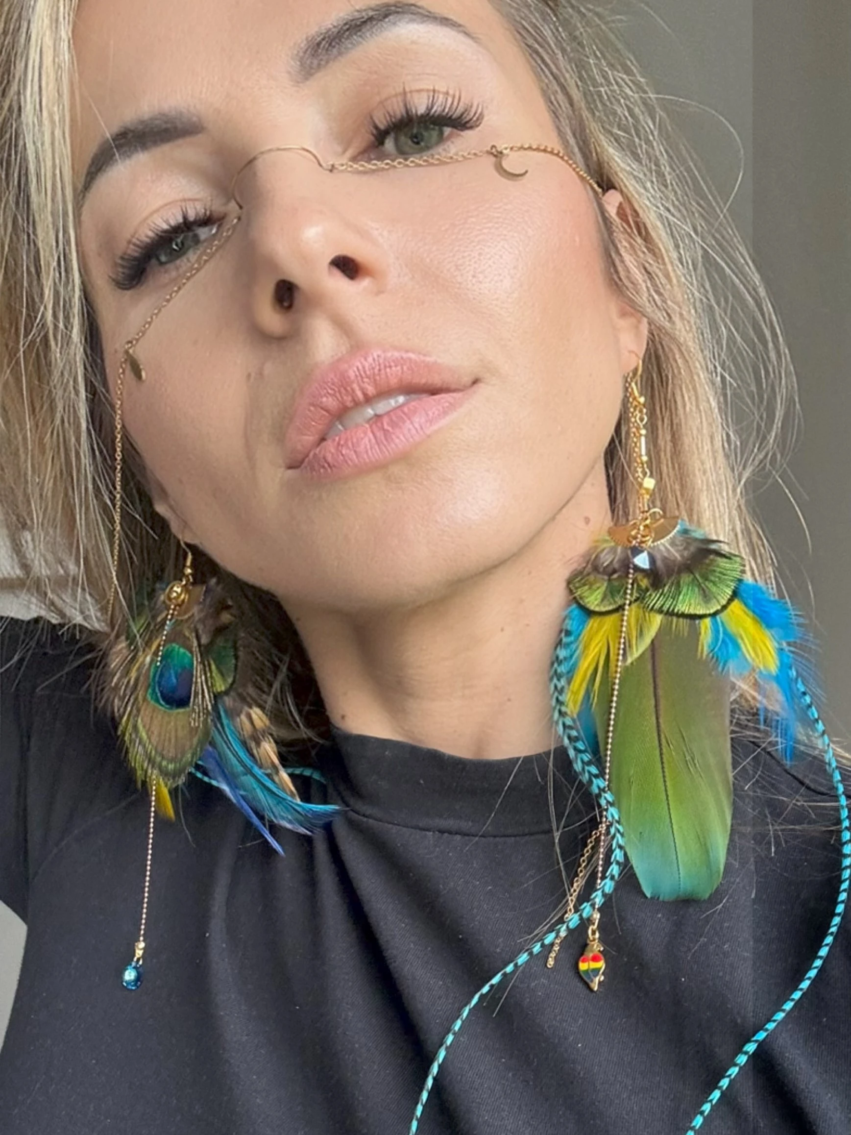 Lekkość: Dzięki zastosowaniu naturalnych piór, kolczyki nie obciążają ucha mimo swojej okazałej formy.