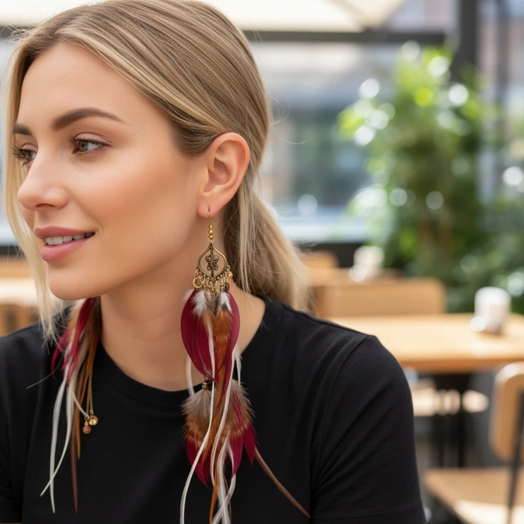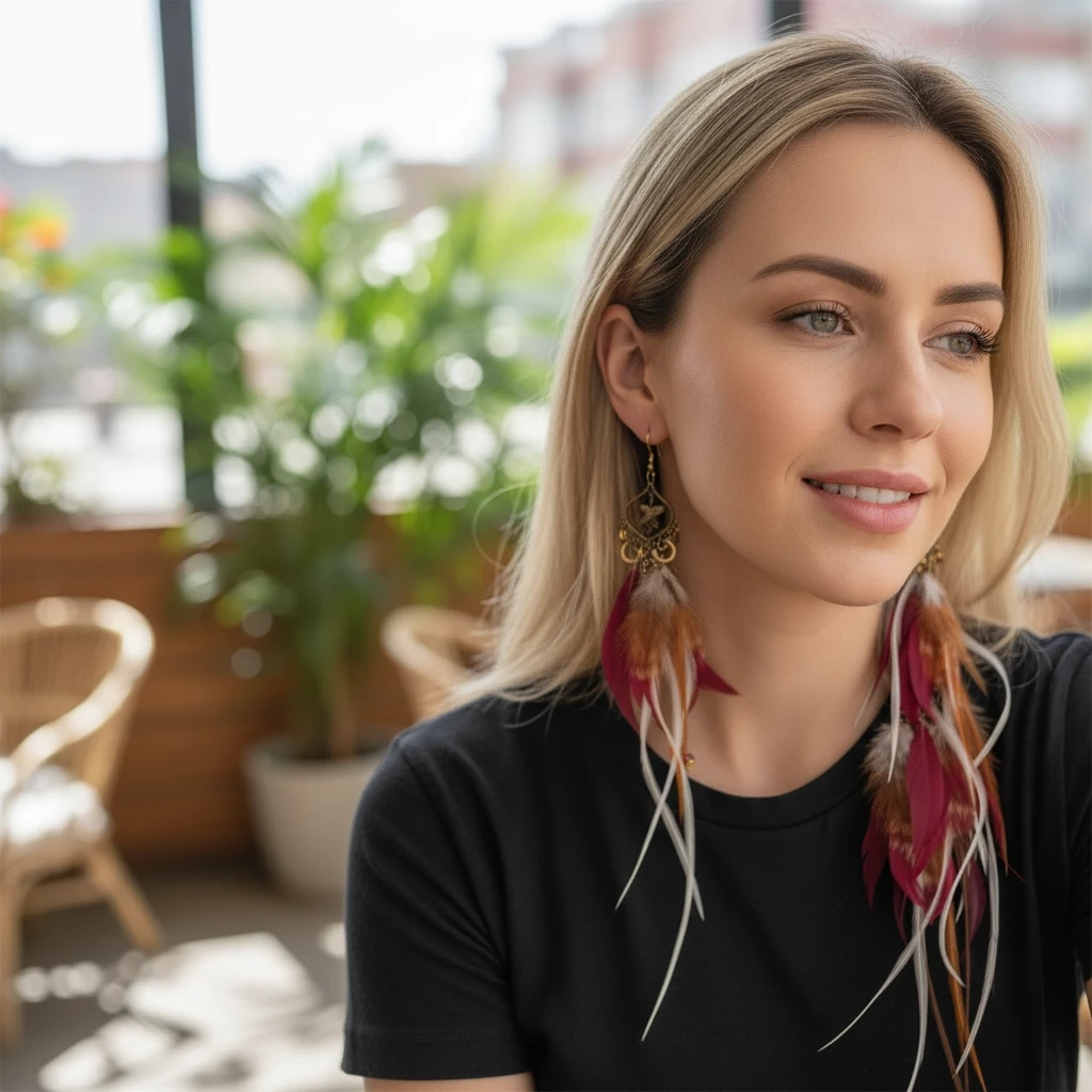 Wolność i Lekkość: Długie, smukłe pióra (do 20 cm) w wersji Mysz, natomiast wzór sowy ma nawet do 35 cm długosci, tańczą przy każdym ruchu, podkreślając Twoją dynamikę i wolnego ducha.