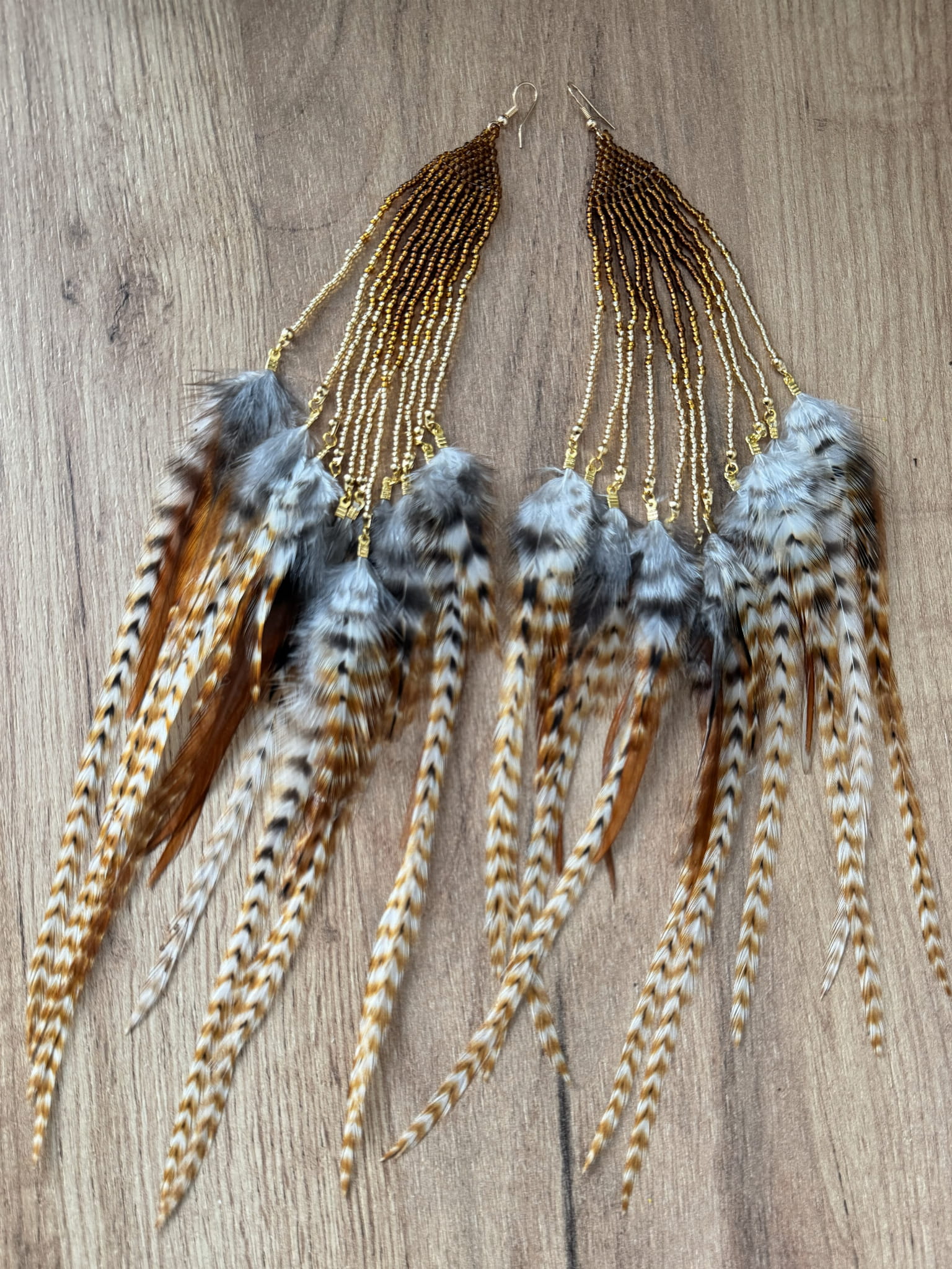 Kolczyki z piór i koralików – Golden Hawk